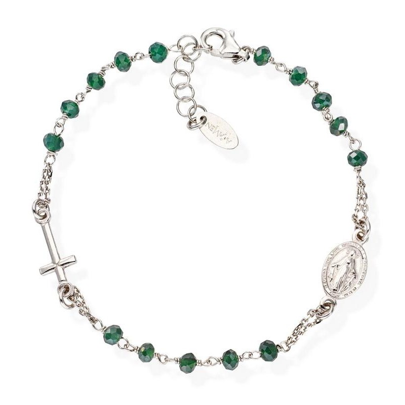 Marca: Amen; Colección: Rosari; Código del Artículo: BROBVB3; Tipo de producto: Pulsera; Género: Mujer; Material: Plata, Cristales verdes; Color: Plata, Verde; Sujeto: Rosario, Cruz, Virgen; Tamaño / Medida: ajustable de 18 a 20 cm.